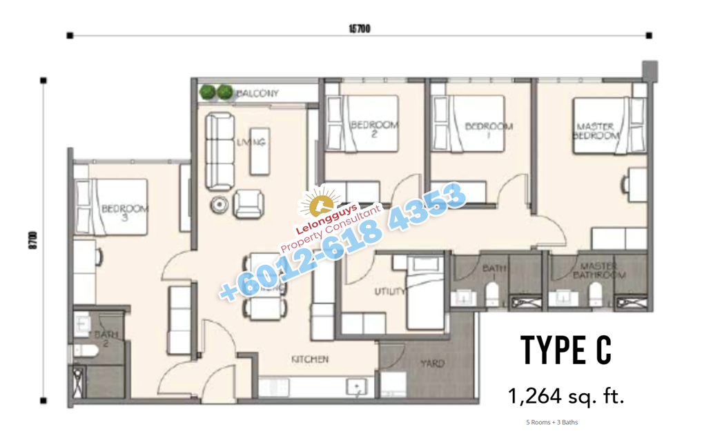 ✅ Built-up 1264 sqft